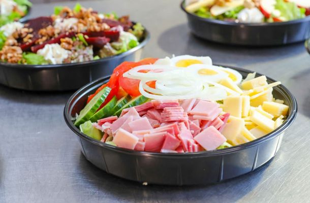 Salatteller (täglich 11 zur Auswahl) oder Feinkostsalate