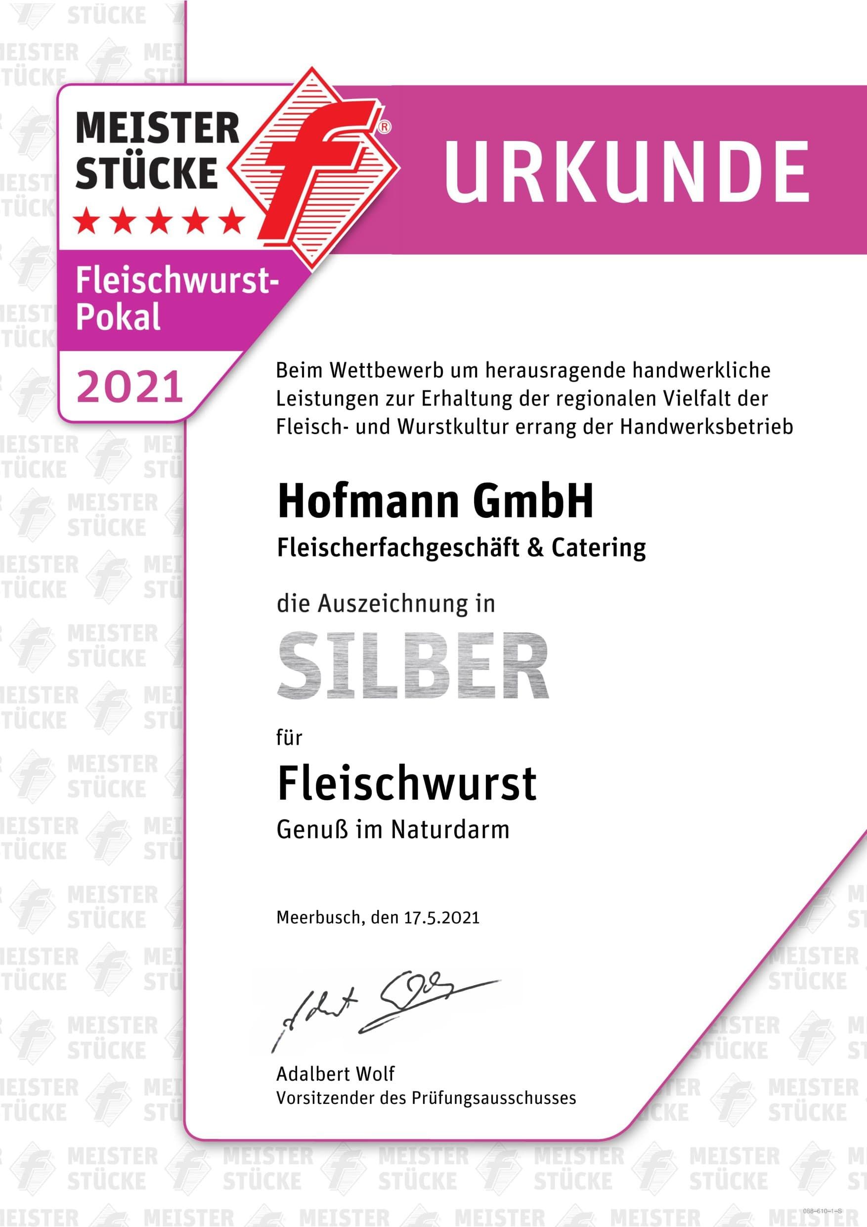 1 x Silber in der Kategorie "Fleischwurst-Pokal"